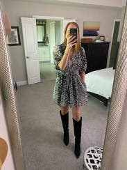 Loved this dress! Fit just right, the poofed sleeves made it stylish, and I loved that it has pockets. Very flattering and great for a party, happy hour, and date night.
