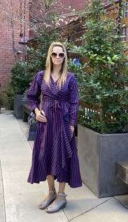 This dress is gorgeous! The jewel colors are rich, the fit is super flattering for a wrap dress (ties high on waist to avoid my problem middle area) and just such a showstopper. One of my fave Rtr's.