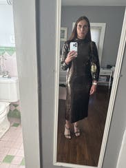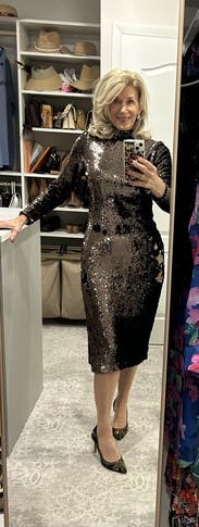 Got so many compliments on this dress! The sequins catch the light which adds to the fun. Kept me warm, too! Only issue is I would’ve liked the arms to be longer, but that wasn’t a deal breaker.