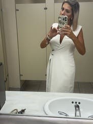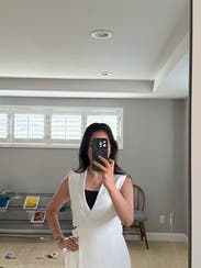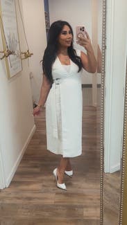 Really loved how chic this dress looked, but beware that it’s a much lower v if you are larger than a B - I was able to pin it with safety pins to prevent too much escaping
