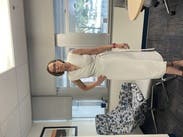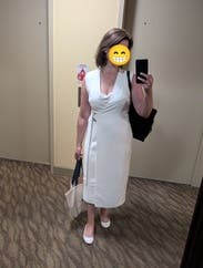 Received so many compliments for this outfit! Looks very sophisticated on. I was hesitant because at first it felt like I was wearing a large robe. I managed to tie it closer and used a safety pin to cover the bust when I was at work.
