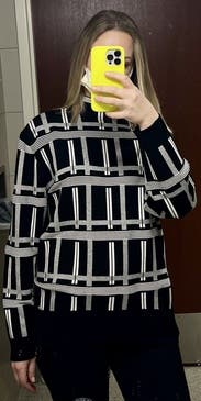The pattern on this is unique but it’s more of a pullover than a true sweater. The neck was a little weird and never looked quite right. It was fine for a day at work, wouldn’t rent again.