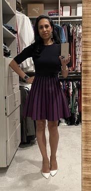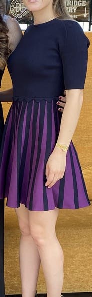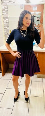 I have worn this dress for multiple nights. It is great because I rented it for the weekend, but I can also wear it to the office! The purple is a nice pop of color that I normally don't wear. I also got a compliment post shower at soul cycle. #love #rtr #tedbaker #soulcycle #hudsonyards #globalbrandsgroup