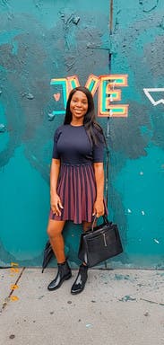 Wore this for a big presentation at my school, shortly before my graduation. Chose this dress because it matched the color scheme of my slides, but it really tied everything together! Got so many compliments on the whole look!