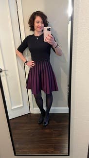 I would def wear this again. It was cool outside and the ribbed, thick and heavy material was perfect. I wore navy closed toe heels. It was flattering to the waist line and vertical stripes were slimming. I usually wear a 4 or small but this size 2 was perfect.
