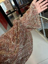 Finally a top with a metallic thread that isn’t itchy. Loved the romantic sleeves. Front is lined. I didn’t find the back too sheer due to the pattern. Annoying bunch of tags on side-seam that bulged out.