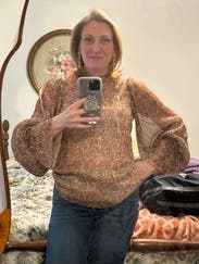I wasn’t sure I would like it when I first saw it. It has a little sparkle I wasn’t sure of. When I put it on it was very flattering. It’s comfortable as well. You can dress it up for a dinner or pair it with jeans. I would definitely rent it again .