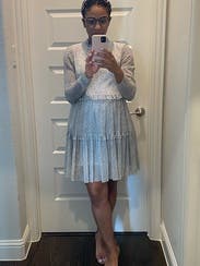 This was a cute dress, I think it ran a little big. I got a lot of compliments, and it was pretty sheer so I had to wear a slip underneath.