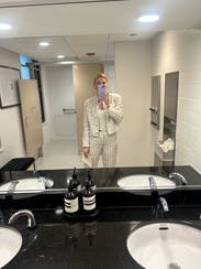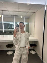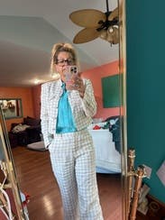 I wore the suit, fun to have something different but still professional. Great quality linen. A bit big