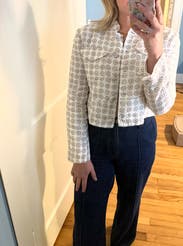 Loved this jacket. Wore this over a navy dress for a client meeting. It was perfect and I loved the pattern on this.
