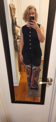 The gold buttons make this outfit. Very comfortable and would be great for winter with a shirt underneath.