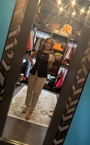 I loved this top! The material is a lightweight knit that is perfect for “fall” in Florida. The top is simple, but the gold buttons give it a very polished and classy feel. The fit is TTS and the cut is very flattering. If you have a large chest, it might pull at the buttons and cause some gaping, but I didn’t have this issue. Looked great with white/cream slacks for work, but could very easily be dressed down with shirts or jeans for a more casual look. Will definitely rent again.