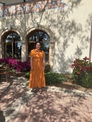 Love the color and the idea of this dress. The extra fabric on the bottom would be elegant without the stitching to like pull it up. But having said that… this is my second time renting haha. Love this color for fall.