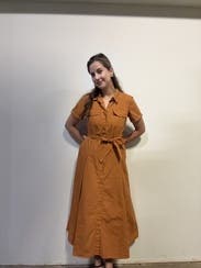 Brown (100% Cotton). Casual Dress. Collared. Short Sleeve. Front button closure. Shoulder to hemline length: 54.5". Imported.