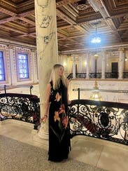 Great formal, statement dress! Great for a big dinner because it’s loose and flowy.