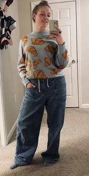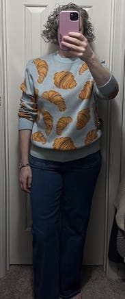 I mean it’s a sweater with croissants all over it. I wish I had sized up for a more oversized look, this fit me more true to size in the body.