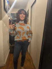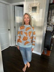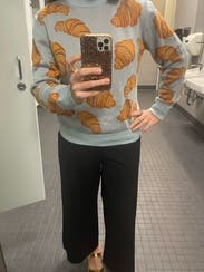 Who doesn't love croissants!? One of my favorite rentals. Contemplated buying this one. Will definitely rent again! Great quality sweater.