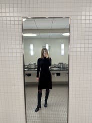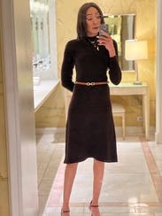 Another friendly reminder that this dress is dark brown not black! Thought this dress was just okay- kinda itchy. Wish it would have been a little longer on me but otherwise TTS.