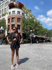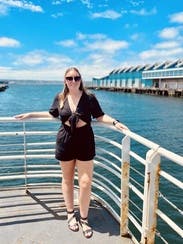 Wore this all day in Savannah and it was fun to wear. Can adjust the top bc it ties. I would recommend sizing down bc it is stretchy in the waist.