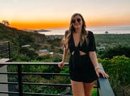 I was 8 months postpartum with my send kid when I wore this on a girls trip. This romper was equal parts comfortable and flattering with just a little bit of sexy thrown in! Would definitely rent again. Thicker, linen fabric