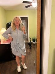 Loved this dress! Would be so cute with sandals and sneakers. It's snug in the hip areas...even with shapewear.