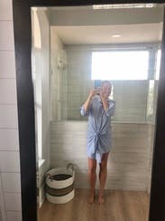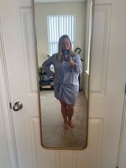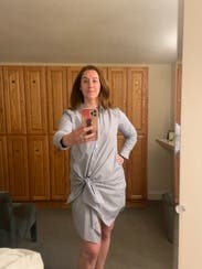 I wore this on vacation and literally wore it as a bathing suit cover up and daytime outfit while at a Pocono resort. Simple outfit that looks purposeful. Fit well. I think this photo makes me look bigger than I did when looking in the mirror.