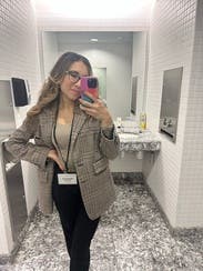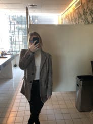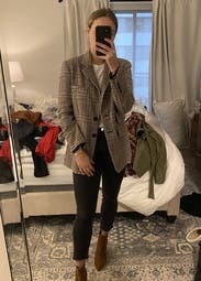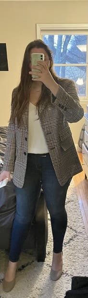 Always get lots of compliments on this blazer. I love it because the sleeves are long enough, and it’s fitted not too boxy.