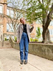 Perfect fit for the oversized blazer look. The plaid was versatile with all solid colors- wore with a handful of sweater, jeans and trouser combinations. Was super warm, worn with a big scarf on mild nyc winter days