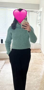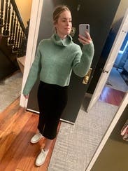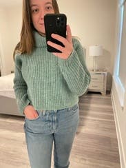 The seafoam green was the perfect color for my visit to the emerald island beach area. The crop was just right along with the extra thick turtleneck. Received several compliments.