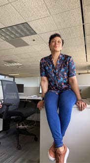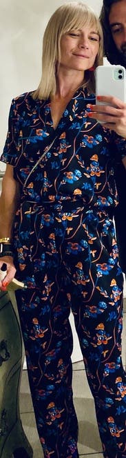 Mixing up the zoom calls with something fun, colorful but still comfortable. Fits like a slightly boxier PJ top. Wore with jeans and loved it!