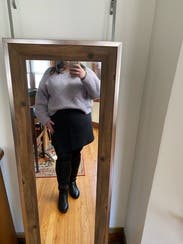I loved this sweater. I wore it to work, to dinner, around the house. It was cozy, a perfect length, and a beautiful color. I did wear a tank under it, both for warmth and to make it not-see-through in those places. Will rent again.