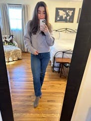 This sweater was a bit heavy but the holes in the pattern helped it "breathe". Just cropped enough to be flattering and on trend. Super flattering and easy to dress up or down.