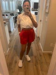 Wore this multiple times, paired with a bustier top underneath so it could be buttoned up for day then open for night events. Cropped fit was great not too short, which can be hard to find.