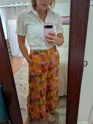 Wore with a pair of linen pants and it was cute. Lots of compliments.