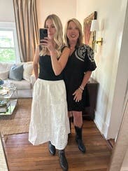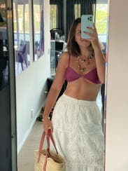 I loved this skirt, very flattering and as someone with wide hips, was happy that it was not tight on my butt, but that also means if you do not have a wide bottom, maybe size down. Looks great separate or with the top