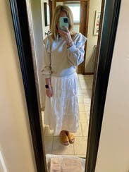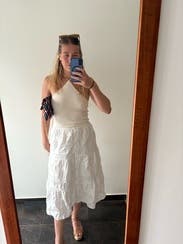 Almost bought it! Was initially afraid of getting it dirty, but I wore it probably five times and loved it! Styled it so many ways- has half lining, so coverage to lower thigh, then lets eyelet show on lower part of skirt