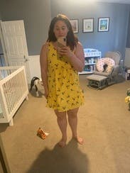 Super cute bright yellow dress. Very comfy. Easy to just throw on. Loved it!