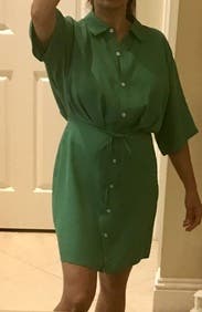 I loved this dress. I wore it to work and around for everyday. The fit was great and the color was super fun. The tie in the front gives it structure and the sleeve length gave it an edge.