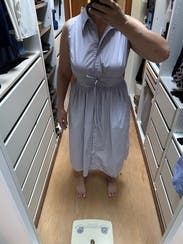 Loved the fit and the double ties that accentuated my waist. Great color in a light fabric. Can dress up or down!