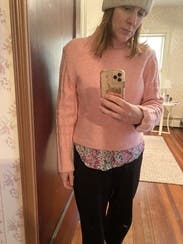 The color reminded me of Pepto Bismol, but I still thought it was a cute sweater. Got the pink thinking it would be good for spring, but it's a warm sweater, and I only ended up wearing it once because it's more of a cool weather sweater.