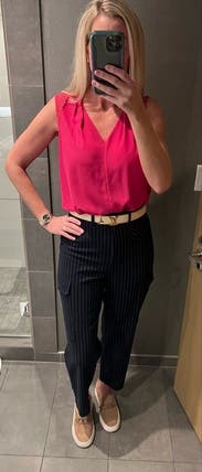 I lovedddd these pants! So on trend with the pinstripe and cargo combo. The fit was very true to size and quality was beautiful. Really wanted to keep these.