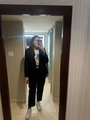 Loved the look with the matching blazer. So many compliments! Fit my almost 5’2” (and short legs at that) very well. I don’t usually rent pants because even with heels they too long, so this was a very nice change :)