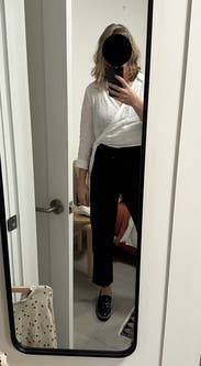 These are great quality pants and fit TTS even for a curvier figure. I loved the super high waist. I felt like I had to wear them with heels in order to make the proportions work.