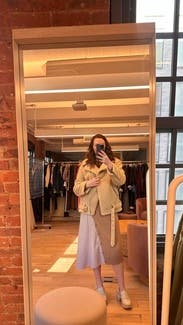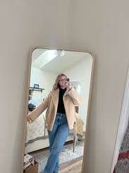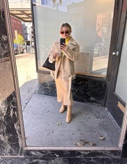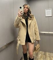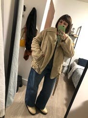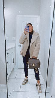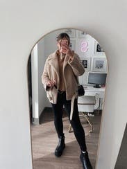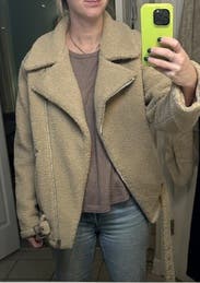 I loved this jacket so much I had a hard time sending it back. It quickly became my everyday jacket because I could throw it over dressy or casual outfits and it always looked cute. It is a little oversized and it is very thick so wouldn’t recommend if you’re looking for something fitted or lightweight.