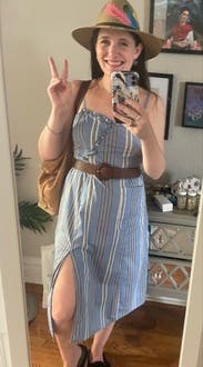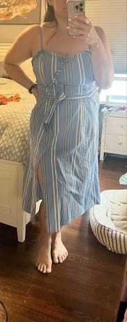 Loved this dress so much! Runs a tad big. I’m typically a 2-4 in dresses and the 2 was still a bit roomy. But I made it work with the sash and by tightening the straps a bit. This dress got so many compliments. It’s the perfect summer dress for work, events, etc. Can dress it up with wedges or make it more casual with sneakers or sandals.