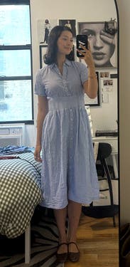 It felt like I was dressed for church, which is not a problem except for it's not my vibe. I normally love cotton shirtdresses too! This did feel very comfortable as other reviewers said, but the fabric is very lightweight & the bottom hem never fully unwrinkled even after multiple passes with the steamer