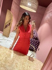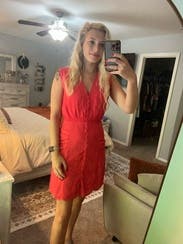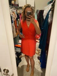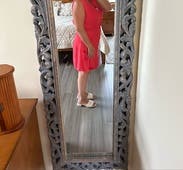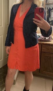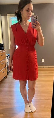 It’s such a cute dress in the pictures of the model online. And the color is super pretty. Though I ordered my regular size it was too big all over especially the top likely because the back is open. Only wore it once and wouldn’t rent it again. Maybe this looks better on taller more slender bodies. I’m short and have an hourglass shape. The length was great for me though as it just hit my knees. Maybe if I ordered a smaller size?!? Just didn’t like it enough to try it again. Plus it wrinkles pretty easily. Just not my jam.