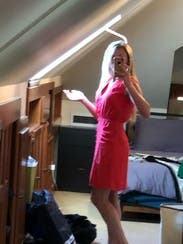 Love this dress but keep in mind you will see your bra in the back. I only needed the front of the dress to show for TV