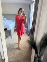 Loved it! Some reviewers mention cleavage. I don’t have much for boobs and only had some cleavage when really leaning over (shown hear is probably exaggeration, but will give you an idea of what you are comfortable with). I Wore to work with unstructured black blazer and small black belt across waste. Removed jacket and belt for happy hour and was great to dress down!