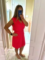 I almost kept this one! Fit perfectly. Not frumpy but also not too sexy or fitted for work. Color is great. Fabric is light and the darts cinch the waist. Just a great dress for work or play. May end up purchasing